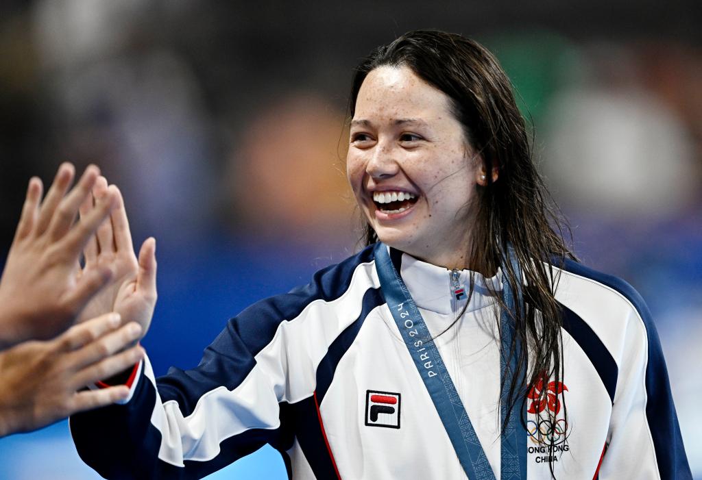 7月29日,季軍中國(guó)香港選手何詩(shī)蓓在頒獎(jiǎng)儀式后。當(dāng)日,巴黎奧運(yùn)會(huì)游泳女子200米自由泳決賽在拉德芳斯體育館舉行。新華社記者 王鵬 攝