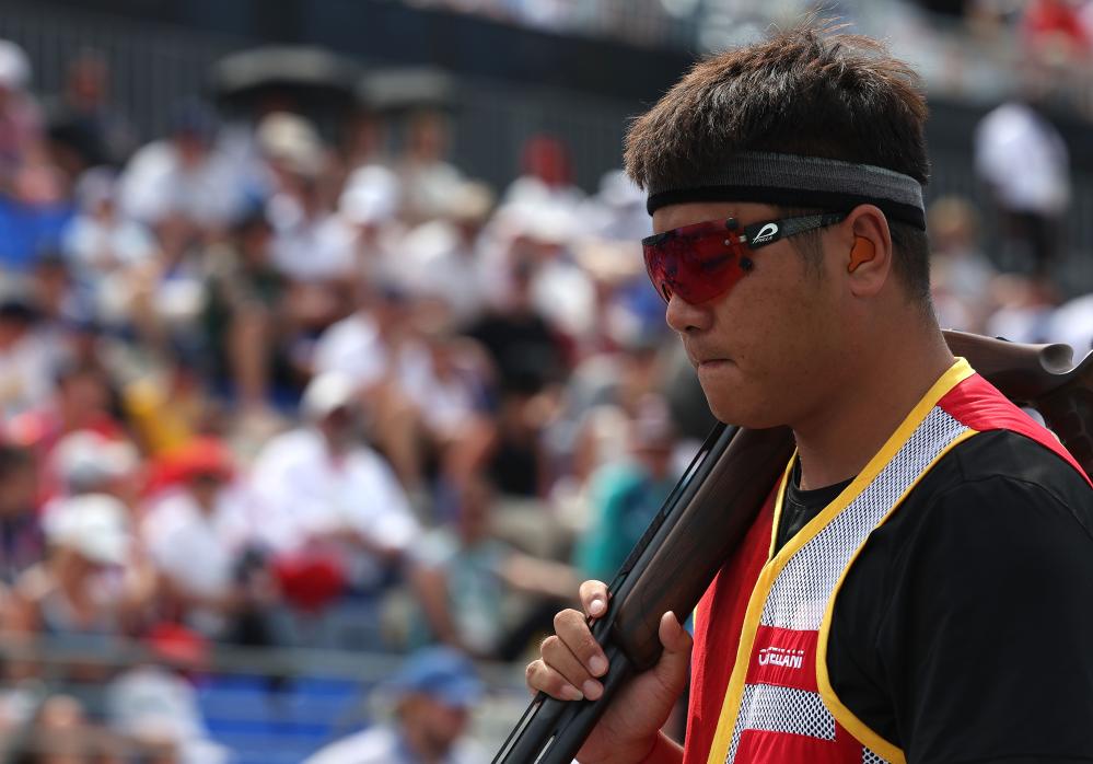 當(dāng)日的沙托魯射擊中心艷陽高照,氣溫一度接近40攝氏度,這對于在戶外參賽的飛碟選手們來說是相當(dāng)大的挑戰(zhàn)。齊迎在資格賽中發(fā)揮出色,125靶命中123次,排名第一闖入決賽。