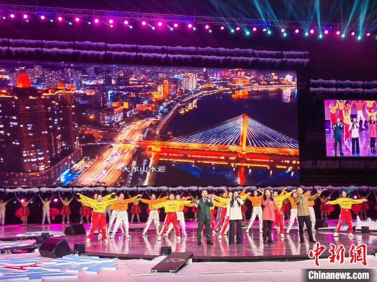 朝鮮族長(zhǎng)鼓舞、滿族舞等有地域特色的文藝與冰雪運(yùn)動(dòng)融合。伴隨音樂(lè)與燈光,雪花、霧氣出現(xiàn)在冰場(chǎng)上方,引來(lái)現(xiàn)場(chǎng)職工們的掌聲和與歡呼聲。
