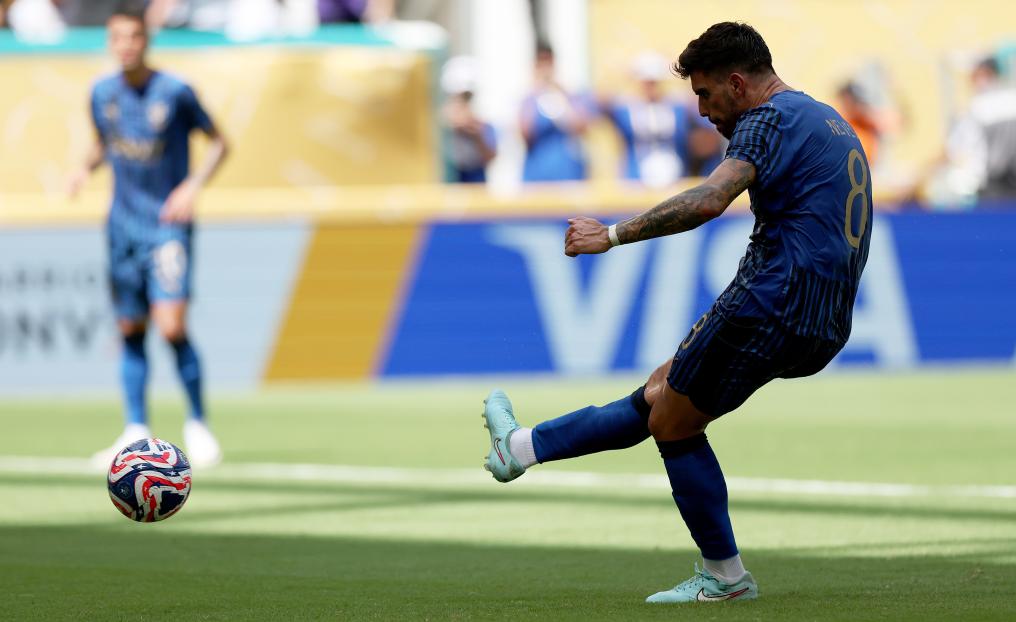 不過“白衣軍團(tuán)”的領(lǐng)先優(yōu)勢(shì)并未保持太久,第41分鐘,皇馬中后衛(wèi)阿森西奧禁區(qū)內(nèi)拉人犯規(guī),被判罰點(diǎn)球,魯本·內(nèi)維斯主罰為利雅得新月扳平比分。