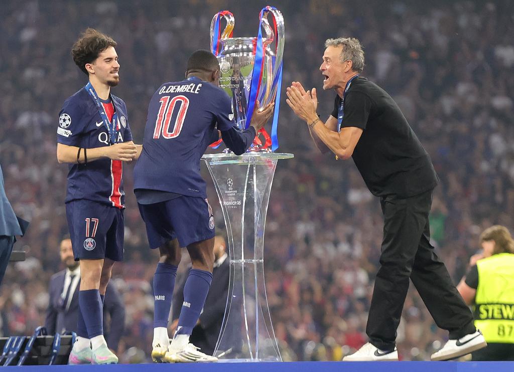 5月31日,巴黎圣日耳曼隊(duì)主教練恩里克(右)與球員登貝萊(中)、維蒂尼亞慶祝。當(dāng)日,在德國慕尼黑進(jìn)行的2024-2025賽季歐冠聯(lián)賽決賽中,法甲巴黎圣日耳曼隊(duì)5比0擊敗意甲國際米蘭隊(duì),收獲隊(duì)史第一座歐冠冠軍獎杯。新華社發(fā)(菲利普·魯伊茲攝) 在其他幾個獎項(xiàng)中,多納魯馬、庫爾圖瓦入圍象征最佳門將的男足“雅辛獎”,亞馬爾再次入選代表著最佳年輕球員的男足“科帕獎”,孔蒂、恩里克等五名主教練角逐男足“克魯伊夫獎”。 今年的金球獎頒獎典禮將于9月22日在巴黎舉行。 (責(zé)任編輯:蔡文斌) |