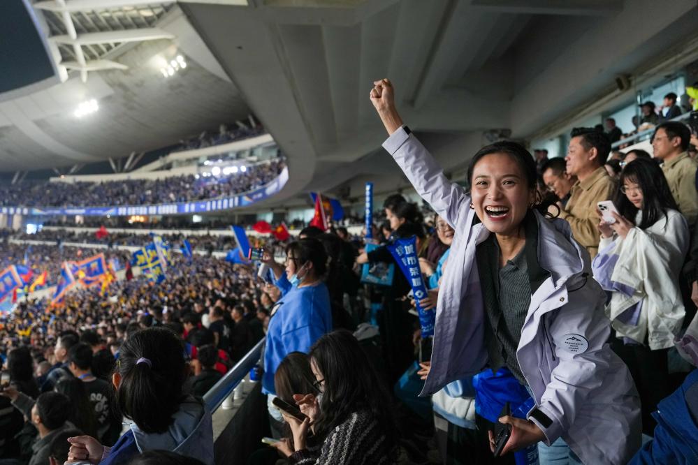 “蘇超”是以心換心的圓桌對話。教師、程序員、外賣小哥同場競技,英雄不問出處;打拼在外的人連上了家鄉(xiāng)的信號,初來乍到的人有了心靈的歸屬,追逐夢想的人書寫了堅持的意義……政府和城市、網(wǎng)民和球迷、觀眾和球員,以心換心,共同講好“人與城”“文與體”“競與合”的“蘇超”故事。