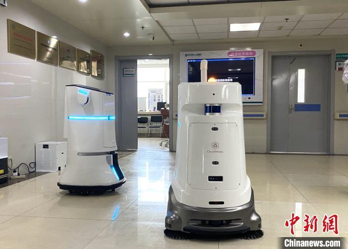 資料圖:銀川市第一人民醫(yī)院內(nèi),智能機(jī)器人正在工作。 楊迪 攝