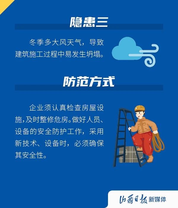 進(jìn)入冬季,氣溫下降,晝夜溫差大,冷暖變化不規(guī)律,一些事故發(fā)生概率會(huì)因?yàn)榧竟?jié)性因素而升高,影響企業(yè)的安全生產(chǎn),下面這些隱患需注意。