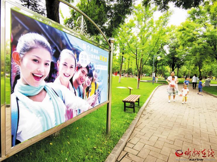 8月15日,市民從忻州城區(qū)人民公園文明旅游宣傳欄前走過。近年來,隨著忻州市創(chuàng)建全國文明城市工作的逐步深入,市民的文明意識(shí)大幅提升,文明出游成為新風(fēng)尚。 張存良 攝