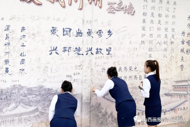 “走遍千山萬水,還是忻州最美”“來了忻州就是忻州人,來過忻州就是忻州人”“愛國(guó)當(dāng)愛家鄉(xiāng) 興邦先興故里”……墻上的一句句充滿情感、生動(dòng)質(zhì)樸的語(yǔ)言,寫滿了對(duì)祖國(guó)、對(duì)家鄉(xiāng)的濃濃熱愛,引起了過往游客路人的深深共鳴。游人們有的在這些文字旁簽名,有的合影留念,有的文思泉涌寫下一條條深情寄語(yǔ),盡情表達(dá)著對(duì)忻州發(fā)展的美好祝福和共建全國(guó)文明城市的堅(jiān)定信心。