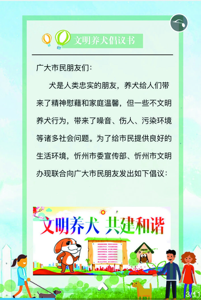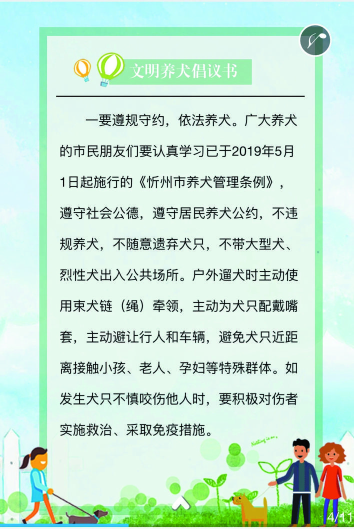 文明養(yǎng)犬,從我做起。讓我們共同努力,心往一處想、勁往一處使,為忻州這座千年之城戴上熠熠閃光的文明桂冠。(魯明強 常曉蓉)