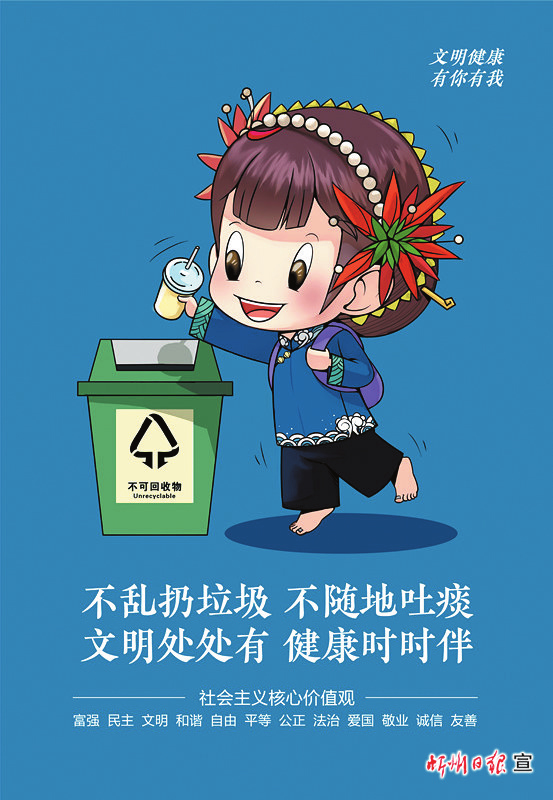 不亂扔垃圾 不隨地吐痰 文明處處有 健康時時伴