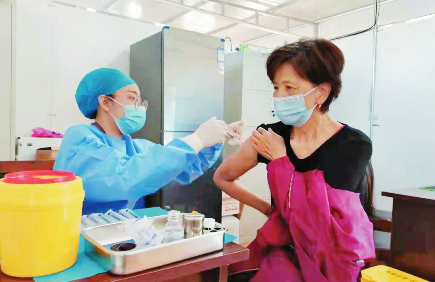 日前,在河曲縣醫(yī)療集團新冠疫苗接種點,醫(yī)務(wù)人員每天堅守崗位,早出晚歸,加班加點為群眾進行疫苗接種。(尹海青 攝)