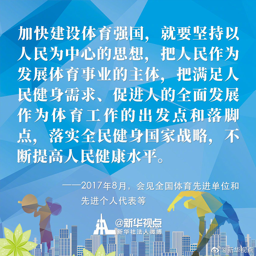 今年8月8日是我國(guó)第12個(gè)“全民健身日”。黨的十八大以來(lái),以習(xí)近平同志為核心的黨中央高度重視關(guān)心體育工作,謀劃、推動(dòng)體育事業(yè)改革發(fā)展,將全民健身上升為國(guó)家戰(zhàn)略,推動(dòng)全民健身和全民健康深度融合。今天,一起來(lái)重溫習(xí)近平總書記關(guān)于推進(jìn)全民健身、體育強(qiáng)國(guó)事業(yè)的金句?