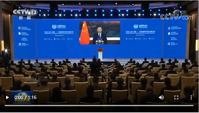 12月5日,國(guó)家主席習(xí)近平在北京向“2021從都國(guó)際論壇”開(kāi)幕式發(fā)表視頻致辭。新華社記者 黃敬文攝