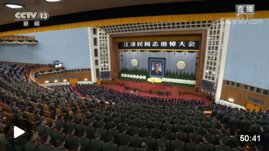 12月6日上午10時,黨中央、全國人大常委會、國務(wù)院、全國政協(xié)、中央軍委在北京人民大會堂隆重舉行江澤民同志追悼大會。