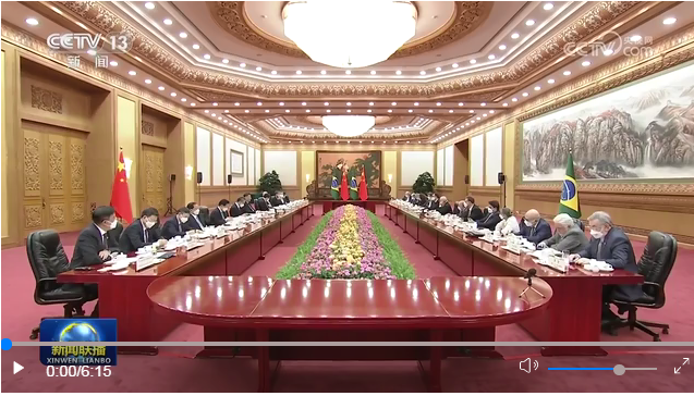 盧拉表示,我非常榮幸和驕傲率龐大代表團(tuán)第四次訪華,這是我這次就任總統(tǒng)以來(lái)首次出訪美洲之外的國(guó)家,體現(xiàn)了巴方對(duì)中國(guó)的熱愛(ài)以及對(duì)發(fā)展巴中關(guān)系的重視。中國(guó)是當(dāng)今世界政治、經(jīng)貿(mào)、科技等各領(lǐng)域不可或缺的重要力量,為促進(jìn)世界和平與發(fā)展發(fā)揮著至關(guān)重要的作用。巴西從推動(dòng)建立公正合理的國(guó)際秩序的戰(zhàn)略高度致力于同中國(guó)發(fā)展更緊密的關(guān)系。全面加強(qiáng)對(duì)華關(guān)系也是巴西立法機(jī)構(gòu)和社會(huì)各界的共同強(qiáng)烈愿望,我很高興參觀了華為公司并會(huì)見(jiàn)了中方有關(guān)企業(yè)代表,對(duì)中國(guó)在5G等領(lǐng)域發(fā)展成就深表欽佩,希望拓展兩國(guó)相關(guān)領(lǐng)域合作,歡迎中國(guó)企業(yè)赴巴投資合作,助力巴實(shí)現(xiàn)數(shù)字轉(zhuǎn)型和低碳發(fā)展。相信巴中深化擴(kuò)大合作將有助于巴“再工業(yè)化”進(jìn)程,有助于解決脫貧等問(wèn)題,更好造福人民。巴方愿同中方密切教育、文化等領(lǐng)域交流合作,增進(jìn)雙方人民相互了解。巴中在很多重大國(guó)際問(wèn)題上擁有共識(shí)和共同利益,雙方都捍衛(wèi)多邊主義和國(guó)際公平正義,巴方愿同中方加強(qiáng)在二十國(guó)集團(tuán)、金磚國(guó)家等多邊框架內(nèi)戰(zhàn)略協(xié)作,就國(guó)際金融、應(yīng)對(duì)氣候變化和環(huán)境保護(hù)加強(qiáng)協(xié)調(diào)合作,為推動(dòng)發(fā)展中國(guó)家擺脫不公平規(guī)則束縛、實(shí)現(xiàn)更加公平平衡發(fā)展作出貢獻(xiàn)。我相信,巴中關(guān)系的未來(lái)必將更加美好。