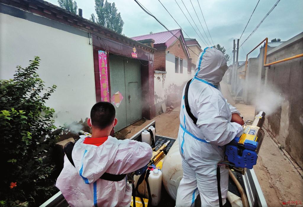 河北涿州發(fā)生暴雨洪澇災(zāi)害后,我市天龍救援隊(duì)響應(yīng)號召,攜帶專業(yè)救援設(shè)備迅速奔赴當(dāng)?shù)鼐仍?,大家沖鋒在前,積極投入抽水、排污、清淤、搬運(yùn)物資、消殺等工作中。圖為8月7日在該市刁窩鎮(zhèn),民盟盟員、救援隊(duì)隊(duì)員王宇龍(右一)和隊(duì)友在進(jìn)行街巷消殺。(焦未軍攝)
