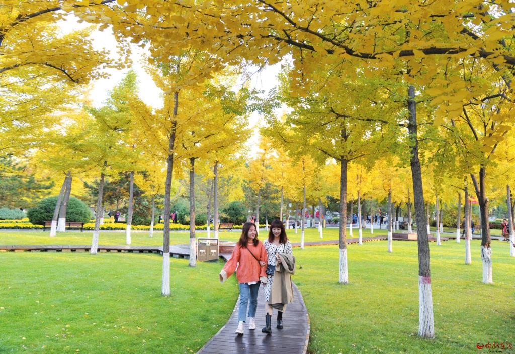 深秋時節(jié),忻州城區(qū)隨處可見花成帶、綠成片、樹成景的優(yōu)美風景線。近年來,我市不斷推進城市綠化,提升綠化檔次,極大改善了人居環(huán)境。圖為游客徜徉在人民公園銀杏林內(nèi)。 (張存良 攝)