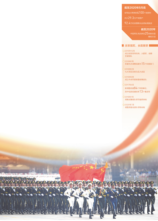 奮斗新時(shí)代,奮進(jìn)新征程。人民軍隊(duì)堅(jiān)持以習(xí)近平新時(shí)代中國(guó)特色社會(huì)主義思想為指導(dǎo),貫徹習(xí)近平強(qiáng)軍思想,貫徹新時(shí)代軍事戰(zhàn)略方針,毫不動(dòng)搖堅(jiān)持黨對(duì)人民軍隊(duì)的絕對(duì)領(lǐng)導(dǎo),堅(jiān)持政治建軍、改革強(qiáng)軍、科技強(qiáng)軍、人才強(qiáng)軍、依法治軍,全面提高捍衛(wèi)國(guó)家主權(quán)、安全、發(fā)展利益的戰(zhàn)略能力,向著黨在新時(shí)代的強(qiáng)軍目標(biāo)、把人民軍隊(duì)全面建成世界一流軍隊(duì)闊步前行,為實(shí)現(xiàn)中華民族偉大復(fù)興提供更為堅(jiān)強(qiáng)的戰(zhàn)略支撐。