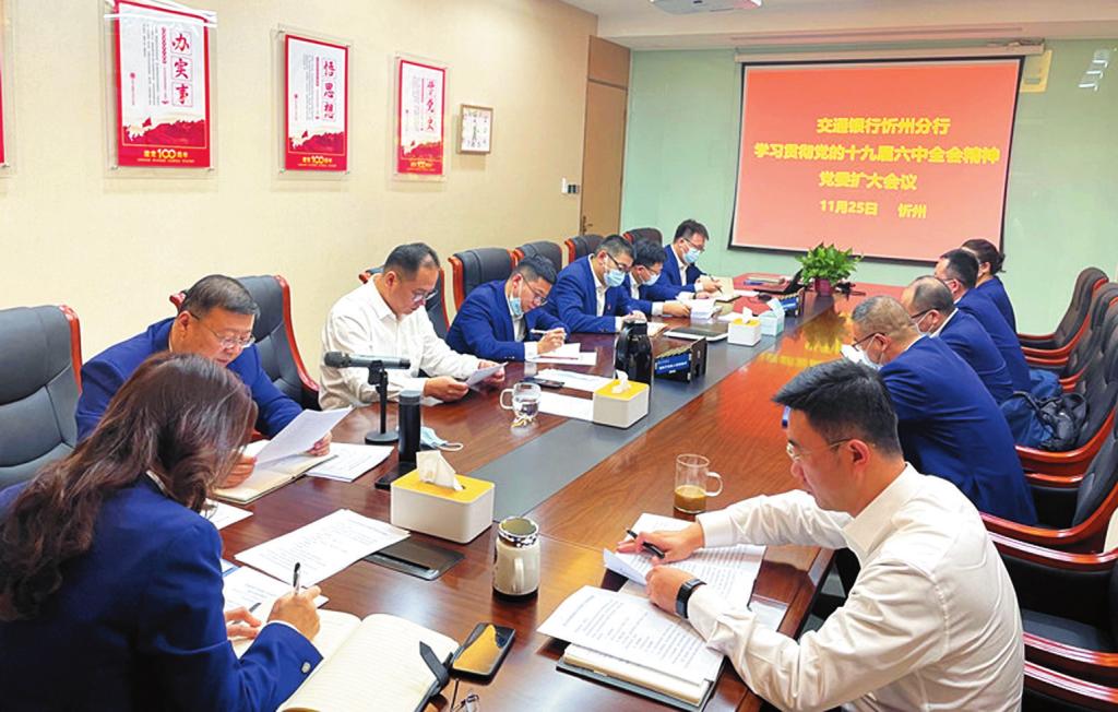 11月25日,交通銀行忻州分行召開黨委擴大會議,傳達學習貫徹黨的十九屆六中全會精神,全會精神在交行忻州分行引起熱烈反響,廣大干部員工迅速掀起學習貫徹全會精神熱潮。