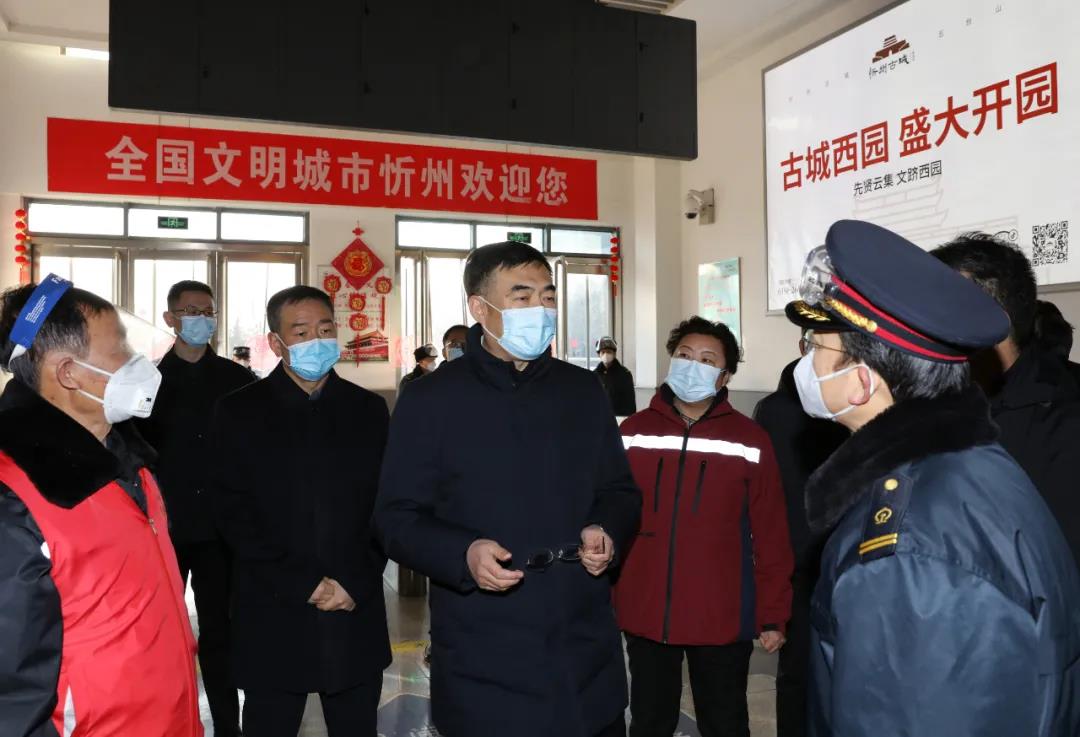 在忻州西站,李建國看望鐵路站場人員、衛(wèi)生防疫人員和社區(qū)志愿者,了解進出站高鐵列車班次和人流高峰時間分布。他指出,防疫一線人員是疫情防控的“第一道防線”,要以崇高的職業(yè)使命感切實守好第一落點的防疫責任,不折不扣落實各項防控措施,嚴格排查篩查,有力、有序、有效做好站點疫情防控工作。要根據(jù)客流峰谷時段科學排班、合理調(diào)度、保證休息,要嚴格操作規(guī)程,做好個人防護,為忻州筑牢衛(wèi)生安全屏障。