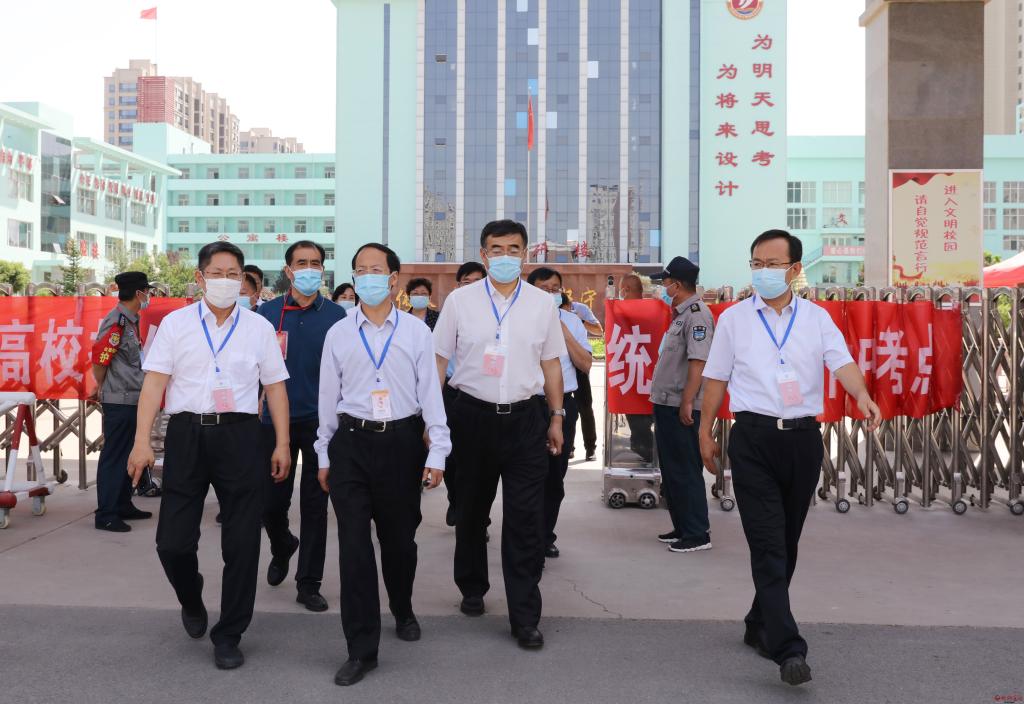 在忻州市高考指揮中心,李青山一行通過(guò)視頻指揮調(diào)度平臺(tái)實(shí)時(shí)察看各縣(市、區(qū))各考點(diǎn)考場(chǎng)試卷啟封、分發(fā)、開(kāi)考情況,察看各考點(diǎn)周邊環(huán)境秩序,到保密室視頻察看各地試卷安全保密措施。隨后深入忻州十中和十一中考點(diǎn),仔細(xì)察看考生進(jìn)入考點(diǎn)時(shí)的測(cè)溫通道和安檢通道,實(shí)地走訪(fǎng)醫(yī)務(wù)室、考務(wù)室、保密室,通過(guò)視頻監(jiān)控察看各考場(chǎng)情況。李青山指出,高考是實(shí)現(xiàn)教育公平、社會(huì)公平的重要制度,承載著為國(guó)選人育人的重大使命。各級(jí)各相關(guān)部門(mén)要充分認(rèn)識(shí)做好疫情常態(tài)化防控形勢(shì)下高考工作的特殊性、重要性、復(fù)雜性,周密部署,扎實(shí)抓好高考期間各項(xiàng)工作,全力保障高考順利進(jìn)行。要按照職責(zé)分工和任務(wù)安排,抓好試題保密、考場(chǎng)引導(dǎo)、考風(fēng)考紀(jì)等關(guān)鍵環(huán)節(jié),切實(shí)把高考工作組織好、落實(shí)好,要加強(qiáng)考點(diǎn)周?chē)h(huán)境整治等高考各項(xiàng)服務(wù)保障,為考生營(yíng)造安靜、有序、寬松的考試環(huán)境。各相關(guān)部門(mén)要按照高考有關(guān)規(guī)定,密切配合、通力合作,確保各項(xiàng)工作做到細(xì)而又細(xì)、實(shí)而又實(shí),把高考服務(wù)工作做得更細(xì)更扎實(shí),為廣大考生穩(wěn)定發(fā)揮提供良好考試環(huán)境。