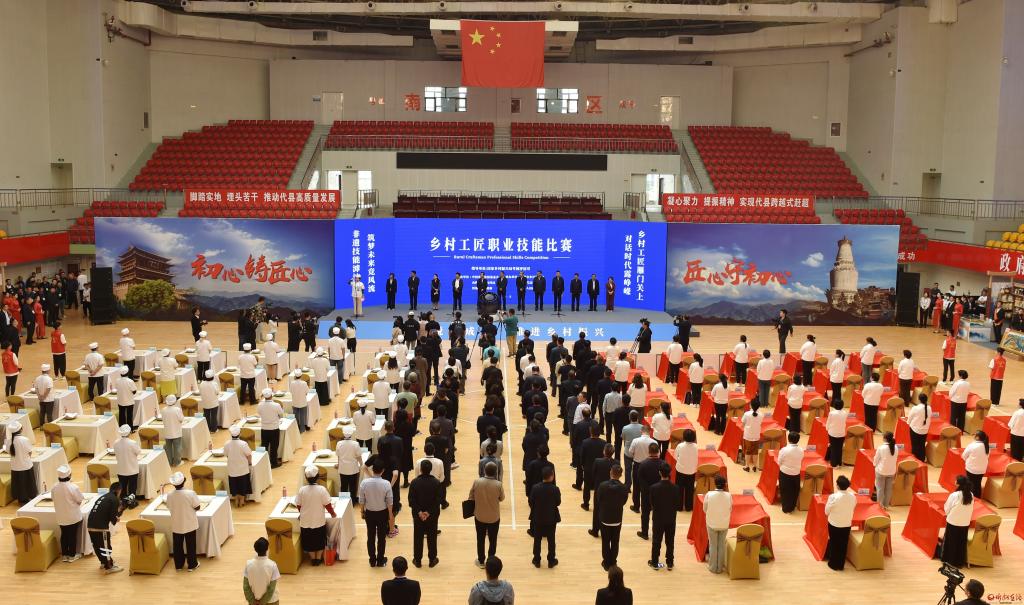 活動(dòng)現(xiàn)場(chǎng)。馮曉磊 攝 雁門聲聲鑄就工匠精神,沱水悠悠傳承非遺技能。5月14日,鄉(xiāng)村工匠職業(yè)技能比賽暨鄉(xiāng)村工匠遴選分類項(xiàng)目(山西)座談會(huì)在代縣舉行。國(guó)家鄉(xiāng)村振興局考評(píng)司二級(jí)巡視員周建文出席并講話,市委書記朱曉東出席并致辭,省鄉(xiāng)村振興局局長(zhǎng)張玉宏,市委副書記、市長(zhǎng)李建國(guó)出席,中國(guó)鄉(xiāng)村發(fā)展基金會(huì)副秘書長(zhǎng)丁亞冬出席并講話,省鄉(xiāng)村振興局副局長(zhǎng)張建成、二級(jí)巡視員趙小英,市委常委、代縣縣委書記崔崢嶺,副市長(zhǎng)李碩,市政府秘書長(zhǎng)張艮生,陜西、黑龍江、吉林、遼寧、河北、山東等六省鄉(xiāng)村振興局分管負(fù)責(zé)同志及有關(guān)業(yè)務(wù)處室負(fù)責(zé)同志,山西11個(gè)市鄉(xiāng)村振興局負(fù)責(zé)同志參加。