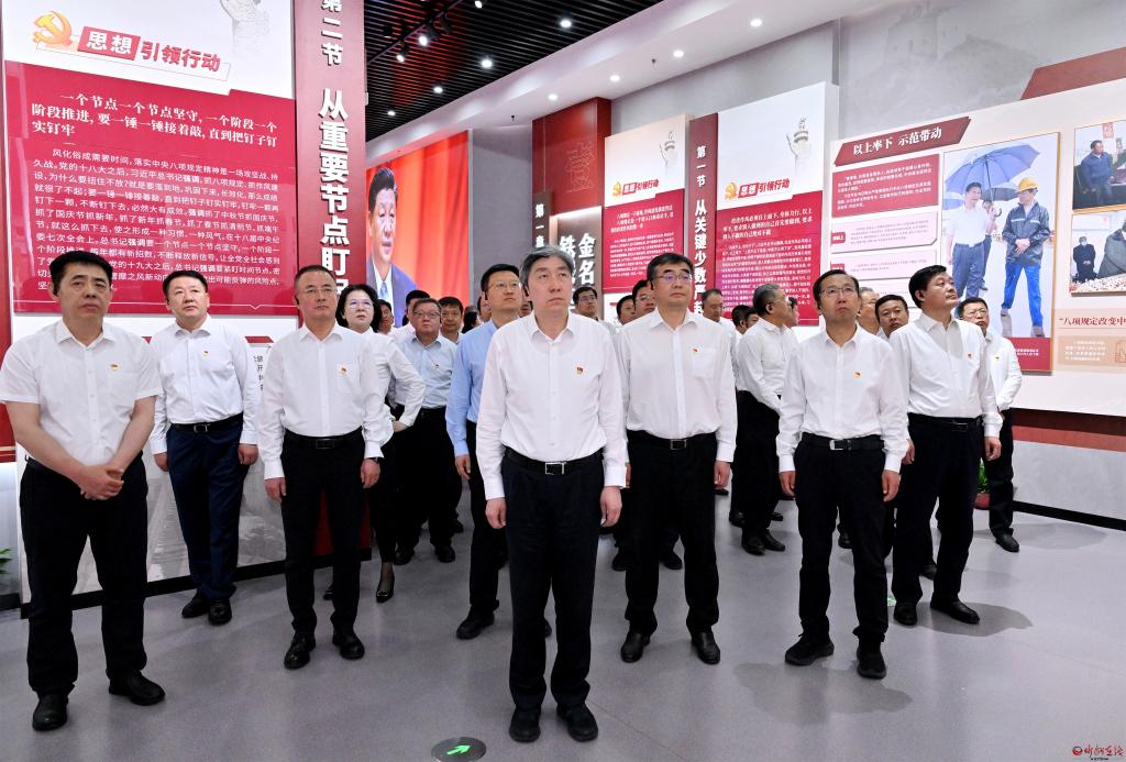 在警示教育館,朱曉東與大家沿“鐵規(guī)矩、金名片”“糾四風(fēng)、治頑疾”“好作風(fēng)、新征程”等展區(qū)認真參觀,仔細聽取講解,通過一幅幅圖片、一個個案例、一份份懺悔錄,深刻感受到省委持續(xù)加固中央八項規(guī)定堤壩、鍥而不舍糾“四風(fēng)”樹新風(fēng)、以釘釘子精神打好作風(fēng)建設(shè)攻堅戰(zhàn)持久戰(zhàn)的堅定決心。