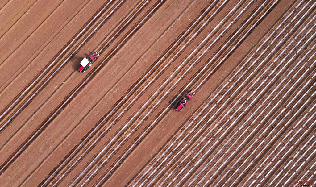 4月21日,在忻州民宇農(nóng)業(yè)甜糯玉米標(biāo)準(zhǔn)化種植基地,兩臺(tái)玉米膜側(cè)播種機(jī)聯(lián)合作業(yè),搶農(nóng)時(shí)進(jìn)行播種。近年來,該基地采用玉米膜側(cè)播種綜合栽培技術(shù)進(jìn)行播種,有效解決了高溫導(dǎo)致玉米早衰等問題,提高了降水利用率,增加了玉米產(chǎn)量。 (張存良攝