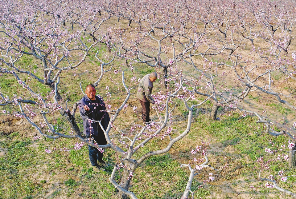3月30日,在臨汾市襄汾縣大鄧鄉(xiāng)上西梁村,果農(nóng)在桃園開(kāi)展春管作業(yè)。日前,上西梁村上百畝桃樹(shù)進(jìn)入盛花期,當(dāng)?shù)剞r(nóng)民搶抓農(nóng)時(shí)對(duì)桃園開(kāi)展追肥、灌溉、疏花等系列農(nóng)事活動(dòng),確保果樹(shù)正常生長(zhǎng)、果實(shí)優(yōu)質(zhì)高產(chǎn)。李現(xiàn)俊攝