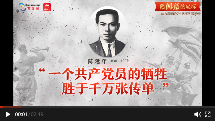 編者按:清明憶英烈,忠魂貫長空。4月1日至5日,南方網(wǎng)、粵學(xué)習(xí)客戶端策劃推出“最閃亮的坐標(biāo)”系列短視頻,通過挖掘廣東革命烈士的光輝事跡,與大家一起緬懷英烈、學(xué)習(xí)英烈。今天推出第一篇《陳延年:一個(gè)共產(chǎn)黨員的犧牲勝于千萬張傳單》。