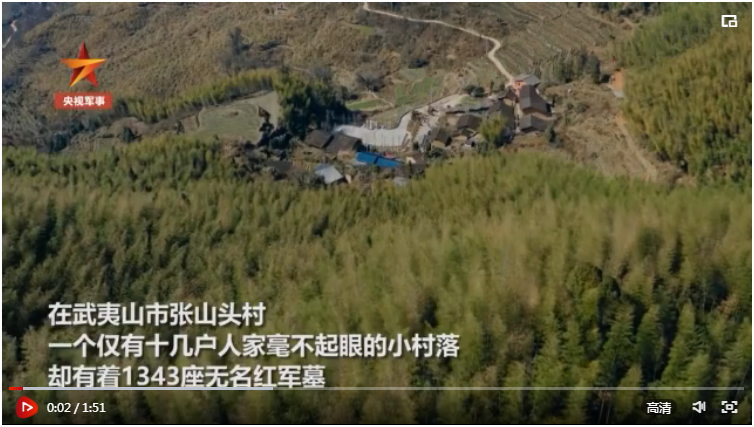 福建張山頭村竹林中,有1343座無名紅軍墓,每座墓僅一根紅飄帶、一個(gè)編號(hào)做標(biāo)記。革命戰(zhàn)爭(zhēng)年代,這里曾是閩北蘇區(qū)紅色首府所在地的中心地帶,不少傷病員在村里的紅軍中醫(yī)院療養(yǎng)。敵人“圍剿”,藥品不足,斷米斷菜,很多將士犧牲了,村民就把他們?cè)嵩卺t(yī)院后方,3塊青磚做墓門。為保護(hù)家人,這些紅軍沒有留下名字……(胡渝 任超 張馨尹)