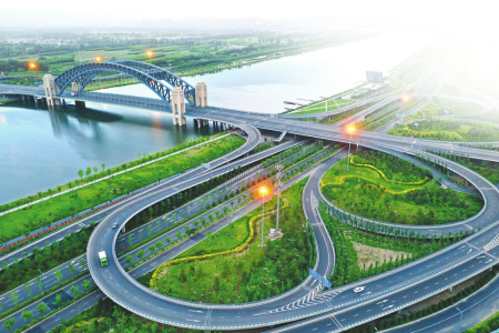 晉陽(yáng)橋,形如彩帶、態(tài)似彩虹,完美地詮釋了傳統(tǒng)與現(xiàn)代交融的設(shè)計(jì)理念,展現(xiàn)出莊重的對(duì)稱式美。夕陽(yáng)西下,站在晉陽(yáng)橋段東岸“汾河晚渡”觀景平臺(tái)遠(yuǎn)眺西山,天際線、山脊線、水岸線層次分明,河面波光粼粼,畫舫古樸典雅,晉陽(yáng)橋雄偉絢麗,呈現(xiàn)出一幅河、舫、橋、山渾然一體的秀美畫卷。