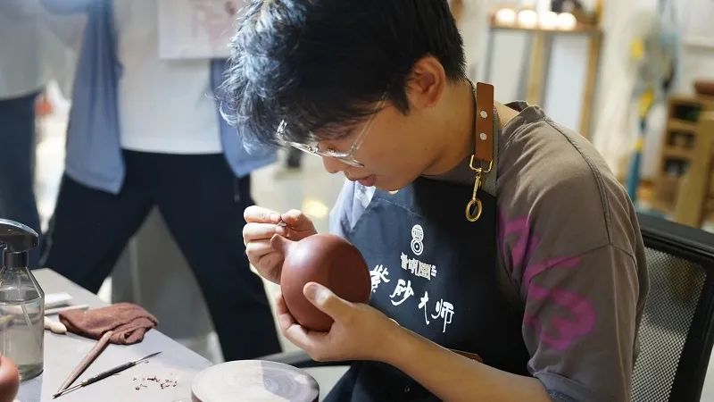 紫砂壺壺嘴部分手工制作。記者楊惠生攝 在砂器(紫砂)文化示范區(qū)的山西晉明堂文化科技有限公司(以下簡稱晉明堂),一位年輕人正熟練地運(yùn)用各種工具給手里的紫砂壺進(jìn)行壺嘴部分的制作。他叫穆清,今年剛20歲出頭的他,耳濡目染父親對紫砂文化的熱愛,也對這一行業(yè)產(chǎn)生了濃厚的興趣,決心將平定紫砂文化傳承發(fā)揚(yáng)下去。 據(jù)了解,晉明堂與省內(nèi)外高校聯(lián)合,與國內(nèi)外知名專家和工藝師聯(lián)合,在傳承傳統(tǒng)技藝和創(chuàng)新之間尋求平衡,蹚出了一條發(fā)展新路。晉明堂注重器物裝飾,植入平定傳統(tǒng)的雕刻、書法、繪畫等藝術(shù)種類,融合進(jìn)山西特有工藝琺華、大漆、刻花等技藝,巧妙地將紫砂與貴金屬結(jié)合,實(shí)現(xiàn)了傳統(tǒng)紫砂器制作和審美趣味突破。