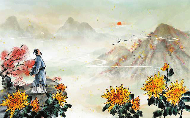 重陽節(jié)作為中華民族重要的傳統(tǒng)節(jié)日,其獨具特色的民俗文化在傳統(tǒng)詩詞中有鮮明的體現(xiàn)。歷代文人墨客以“重陽”為題,感受著重陽時節(jié)的美好風(fēng)光,登高望遠(yuǎn),飲酒賞菊,留下了浩如煙海的佳作。“茲辰采仙菊,薦壽慶重陽”,古詩詞中的重陽民俗既擁有無限的詩意風(fēng)光,也蘊含了中華民族傳統(tǒng)孝道文化思想。 農(nóng)歷九月初九重陽節(jié),被列入首批國家級非物質(zhì)文化遺產(chǎn)名錄,與除夕、中元節(jié)、清明節(jié)并列為中國傳統(tǒng)文化四大祭祖節(jié)日。關(guān)于重陽節(jié)的起源,說法不一,主要有“祭祖祈福說”“去災(zāi)辟邪說”“長壽說”“慶豐收說”等,其中“祭祖祈福說”流傳最廣。關(guān)于重陽祭祖的文字記載,最早可追溯于《呂氏春秋》:“九月命家宰,農(nóng)事備收,舉五種之要。藏帝籍之收于神倉,祗敬必飭?!笨梢姰?dāng)時已有秋收后祭祖以感謝祖先恩德的活動。南北朝時期,古人在重陽節(jié)祈福宴飲,劉苞在《九日侍宴樂游苑正陽堂詩》中描繪了重陽宴飲歌舞的盛況:“云飛雅琴奏,風(fēng)起洞簫吹。曲終高宴罷,景落樹陰移?!钡搅颂拼?,重陽節(jié)被正式定為民族節(jié)日,人們在這一天舉辦祭祀祈福活動,詩人王維在《奉和圣制重陽節(jié)宰臣及群官上壽應(yīng)制》中有云:“四海方無事,三秋大有年。百生無此日,萬壽愿齊天?!碧浦?,各朝沿襲重陽祭祀祈福的習(xí)俗,并發(fā)展了更加豐富的民俗活動,或登高望遠(yuǎn),或賞菊賦詩,文人墨客以重陽民俗為線索,留下無數(shù)經(jīng)典詩作。 “楚萬重陽日,群公賞宴來。共乘休沐暇,同醉菊花杯?!碧拼娙嗣虾迫蛔鳌逗唾Z主簿弁九日登峴山》一詩,透露重陽宴飲、知己雅集等活動已成重陽民俗文化的主流。唐代詩人白居易的《九日登西原宴望同諸兄弟作》道出了重陽之際賞菊飲酒的文人風(fēng)致:“病愛枕席涼,日高眠未輟。兄弟呼我起,今日重陽節(jié)。起登西原望,懷抱同一豁。移座就菊叢,糕酒前羅列。雖無絲與管,歌笑隨情發(fā)。”朱灣有《重陽日陪韋卿宴》,“清規(guī)陳侯事,雅興謝公題。入座青峰近,當(dāng)軒遠(yuǎn)樹齊”,詩人與知己節(jié)日相聚,詩酒唱和,不僅為重陽節(jié)增添了一份雅興,也展現(xiàn)了喜慶歡樂的節(jié)日氛圍。 登高是重陽佳節(jié)流傳至今的民俗。據(jù)宋代孟元老《東京夢華錄》記載:“都人多出郊外登高,如倉王廟、四里橋、愁臺、梁王城、硯臺、毛駝岡、獨樂岡等處宴聚?!笨梢姇r人對外出登高的喜愛。宋代文人晏殊的《訴衷情·芙蓉金菊斗馨香》描繪了登高時所見的秋日盛景:“芙蓉金菊斗馨香,天氣欲重陽。遠(yuǎn)村秋色如畫,紅樹間疏黃。流水淡,碧天長,路茫茫。憑高目斷,鴻雁來時,無限思量?!敝仃栔H,木芙蓉、菊花香氣沁人,在藍(lán)天碧水間,詩人登高遙望,看到鴻雁飛來,勾起無限思鄉(xiāng)之情。宋代詞人吳文英作《蝶戀花·九日和吳見山韻》,詞云:“明月枝頭香滿路。幾日西風(fēng),落盡花如雨。倒照秦眉天鏡古。秋明白鷺雙飛處。自摘霜蔥宜薦俎。可惜重陽,不把黃花與。帽墮笑憑纖手取。清歌莫送秋聲去?!惫蠢樟艘环歉?、踏歌、賞秋的秋日勝景圖。申時行的《吳山行》一詩具體描繪了民間在重陽節(jié)這天登高的盛況:“九月九日風(fēng)色嘉,吳山勝事俗相夸。闔閭城中十萬戶,爭門出郭紛如麻。拍手齊歌太平曲,滿頭爭插茱萸花。”重陽佳節(jié),天朗氣清,百姓競相出城,到吳山一覽勝景,悅耳清脆的歌聲回蕩在耳畔,隨處可見茱萸插頭、喜不自勝的游人,渲染了祥和喜慶的節(jié)日氣氛。