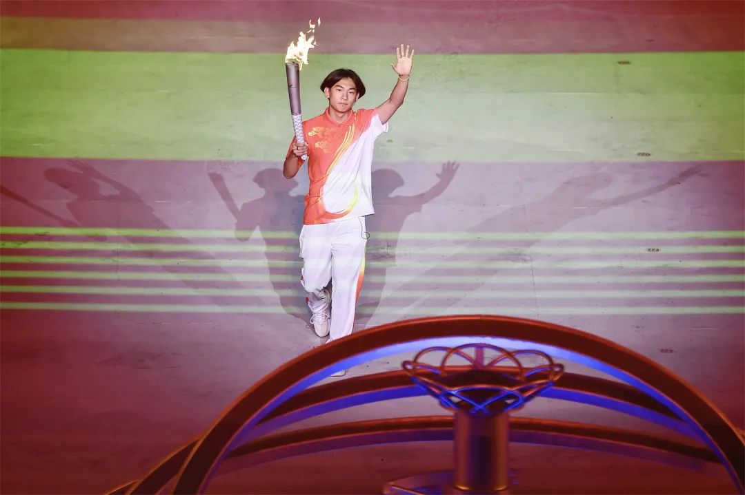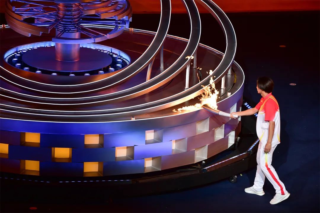 開幕式之夜,最為激動人心的就是點火時刻。在射擊世界冠軍張益梵、鄉(xiāng)村干部王春、環(huán)衛(wèi)工人孫秀蘭、大國工匠官生花、公交司機馮冰依次傳遞過后,火炬來到了最后一棒火炬手、北京冬奧會冠軍蘇翊鳴的手中。主火炬塔點火裝置以山西民俗“旺火”為設(shè)計依據(jù),采用清潔能源“微火”點燃的方式。蘇翊鳴手持火炬,在萬眾矚目之下,以“微火”點“旺火”,歷史、現(xiàn)在與未來,在這一刻融匯賡續(xù)。