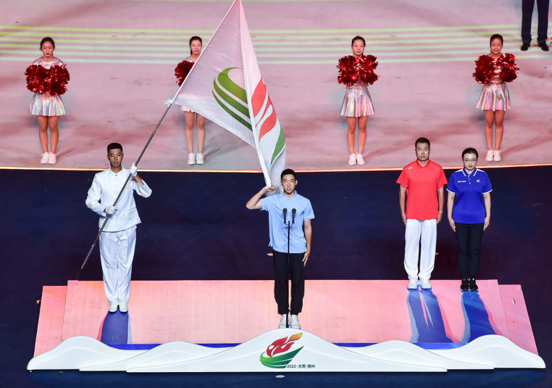富有地域特色的暖場表演過后,在一萬多名現(xiàn)場觀眾聲震云霄的倒計時中,開幕儀式正式開始。國旗和會旗入場儀式后,各代表隊運動員、教練員在引導(dǎo)員和執(zhí)旗手的引導(dǎo)下,闊步入場。大同和朔州作為東道主,壓軸亮相,得到了觀眾的熱烈歡呼。之后,升國旗儀式和升會旗儀式莊嚴(yán)進(jìn)行,山西省第十六屆運動會宣布開幕。