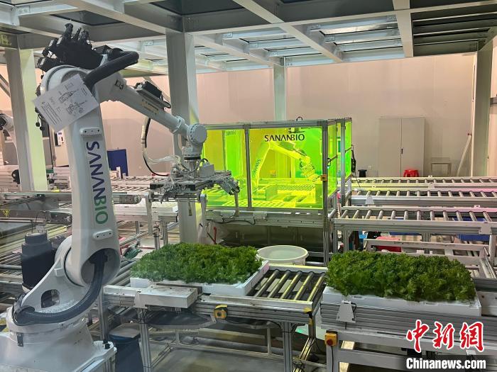 圖為2023年6月16日中科三安LED植物工廠內(nèi)部。 中新社記者 魏晞 攝