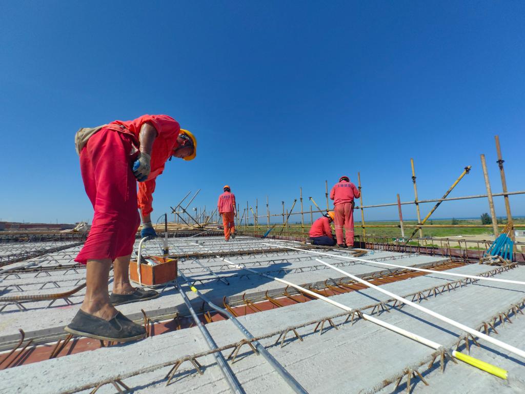 備戰(zhàn)全島封關,相關硬件設施建設不能落后。在洋浦國際集裝箱碼頭附近,洋浦港封關運作項目建設現(xiàn)場一片繁忙,百余名工人頂著烈日或扎鋼筋,或拌水泥,或裝樓板,個個汗流浹背。“9月要完工,助力海南自貿港到今年底具備封關運作硬件條件?!表椖控撠熑死顤|冬說。