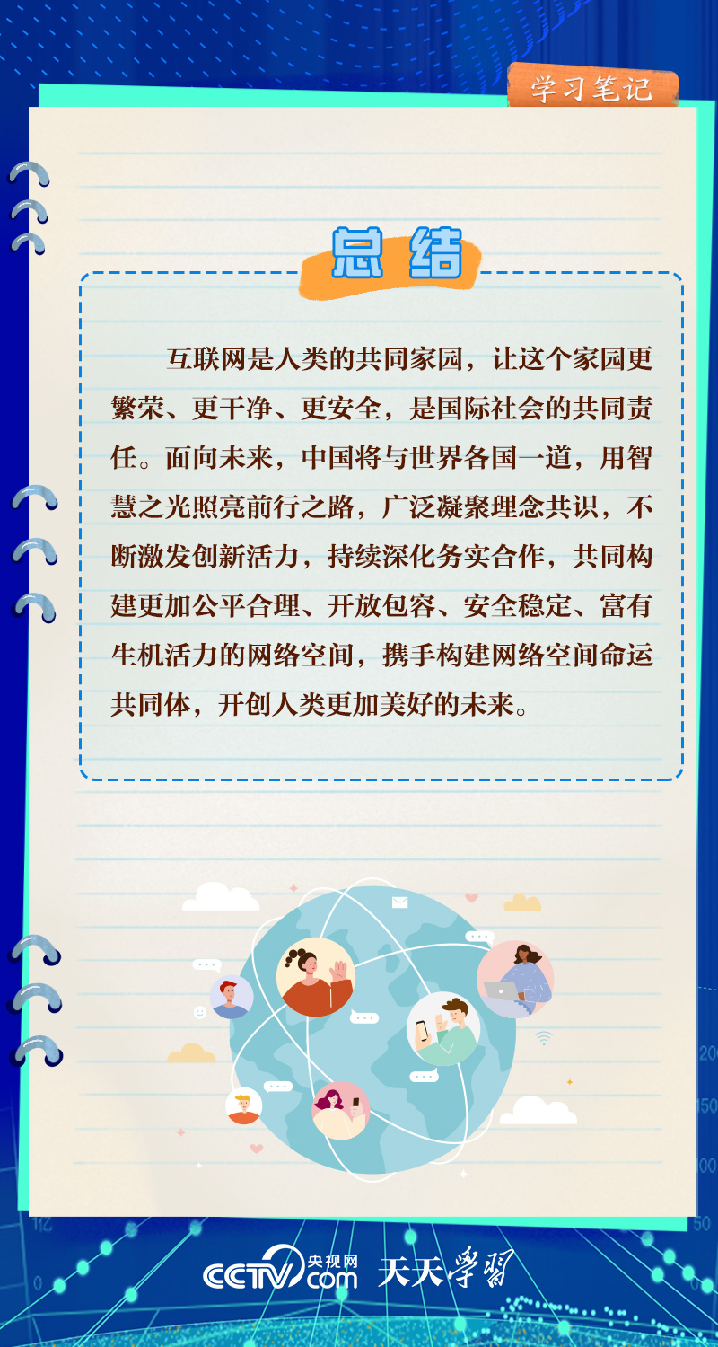 天天學(xué)習(xí)“互聯(lián)網(wǎng)發(fā)展是無國界、無邊界的,利用好、發(fā)展好、治理好互聯(lián)網(wǎng)必須深化網(wǎng)絡(luò)空間國際合作,攜手構(gòu)建網(wǎng)絡(luò)空間命運(yùn)共同體。”面對日益發(fā)展擴(kuò)大的網(wǎng)絡(luò)空間,習(xí)近平主席倡導(dǎo)構(gòu)建網(wǎng)絡(luò)空間命運(yùn)共同體,為推動全球網(wǎng)絡(luò)空間互聯(lián)互通、共享共治注入中國智慧。