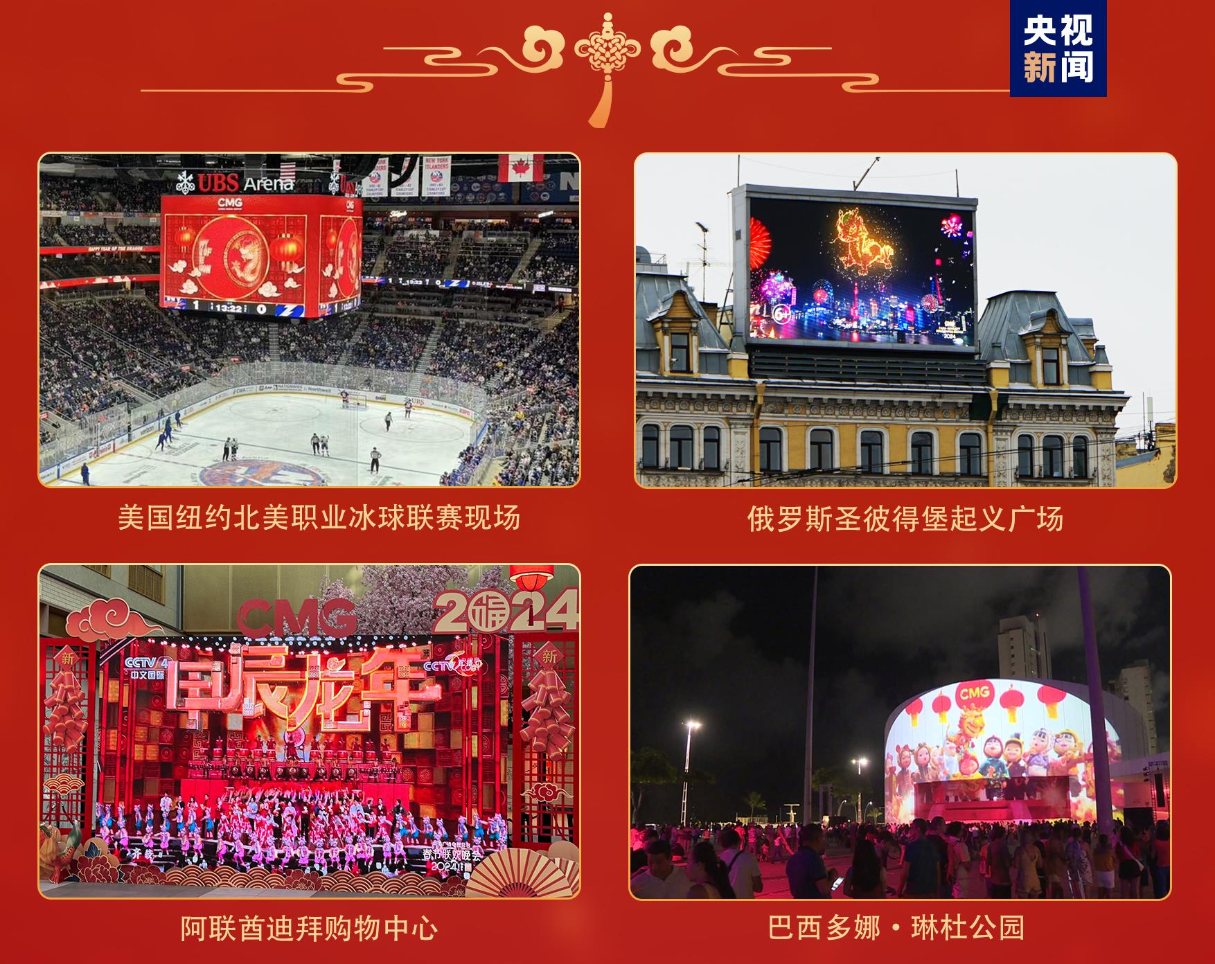 全球看春晚。作為聯(lián)合國(guó)大會(huì)將農(nóng)歷新年列為聯(lián)合國(guó)假日后的首個(gè)新年,總臺(tái)主辦的“春晚序曲 全球看春晚”活動(dòng)在美國(guó)、肯尼亞、瑞士等多國(guó)舉辦近40場(chǎng);各大洲49個(gè)國(guó)家、90座城市的3000余塊公共大屏直播和宣介總臺(tái)春晚;世界最高建筑迪拜哈利法塔、非洲第一高樓埃及新行政首都中央商務(wù)區(qū)標(biāo)志塔、瑞典斯德哥爾摩市中心國(guó)王花園廣場(chǎng)、巴西多娜·琳杜公園等多個(gè)全球地標(biāo)性建筑上演春晚燈光秀……靈動(dòng)吉祥的“龍辰辰”將中國(guó)新年的美好祝愿?jìng)鞅槿颉?/p>