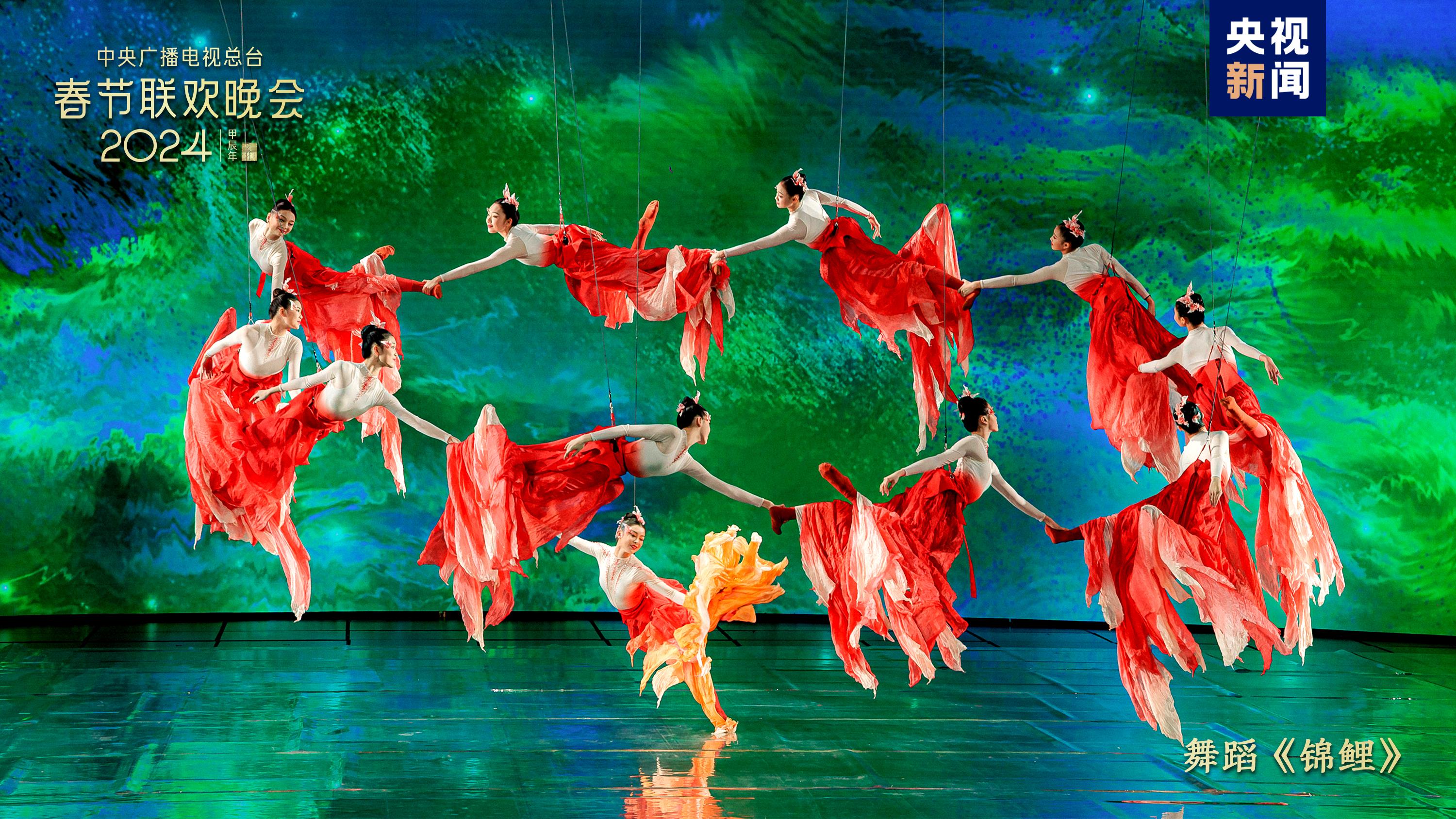 五彩紋樣燦若云霞,繪出錦繡中華。中國(guó)傳統(tǒng)紋樣創(chuàng)演秀《年錦》選取漢、唐、宋、明四個(gè)朝代富有代表性的紋樣,通過(guò)歌曲+虛擬合成技術(shù),織出一幅跨越千載的紋樣變遷圖卷。劉濤、劉詩(shī)詩(shī)、李沁、關(guān)曉彤身著傳統(tǒng)服飾,圖案繁盛、細(xì)節(jié)有序的華服之美隱藏著河清海晏、繁榮昌盛的美好祝福。舞蹈《錦鯉》融合AI、XR等技術(shù),舞者以飛天之姿化身水中錦鯉,點(diǎn)波流金,煥活舞臺(tái)上的一池春水,令人驚艷。