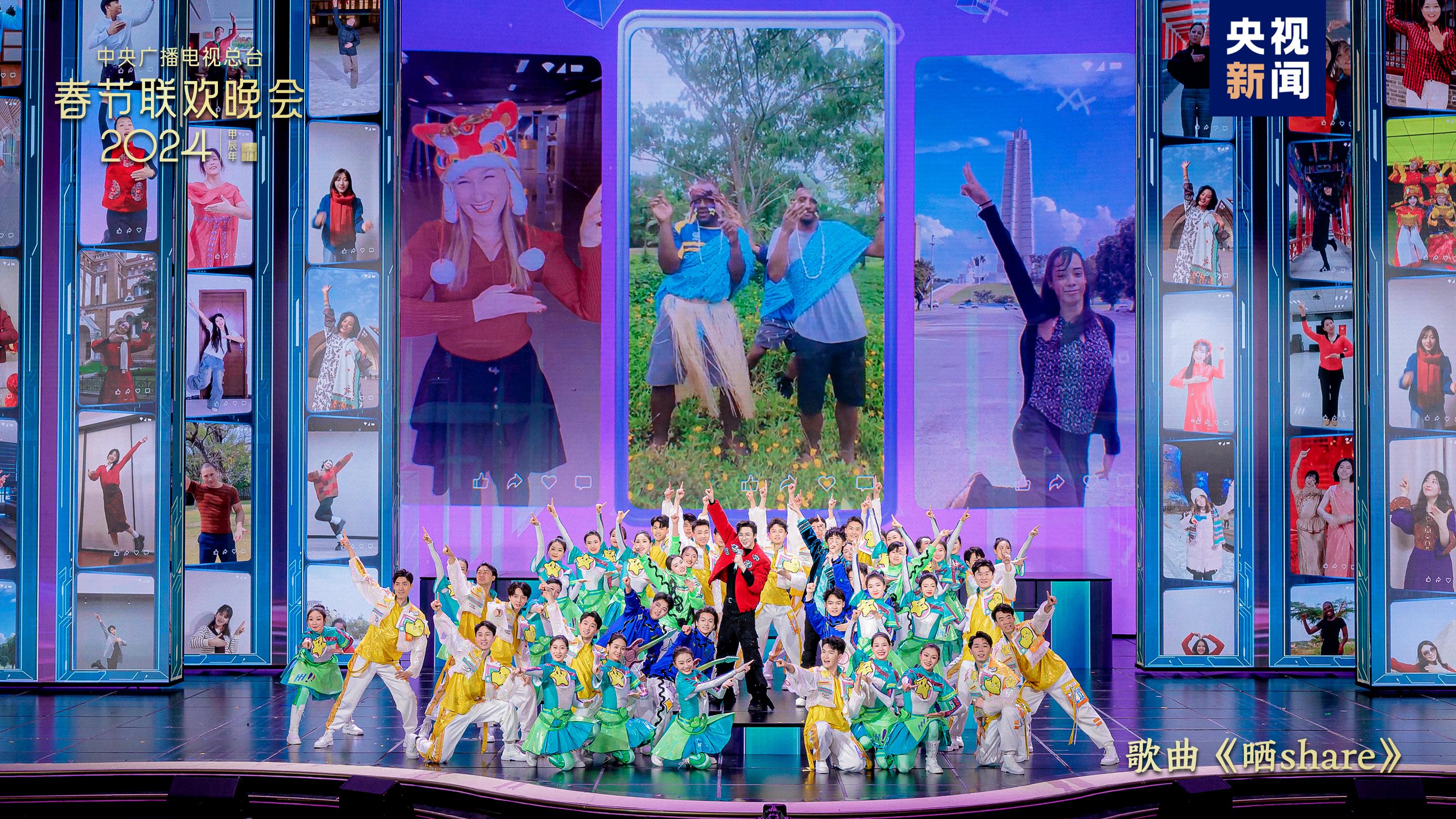 伴著一曲動(dòng)感快樂(lè)的《曬share》,大張偉、劉宇寧與全球網(wǎng)友聯(lián)屏共舞“龍年主題舞蹈”,分享春節(jié)的喜慶歡樂(lè)。這支舞蹈來(lái)自總臺(tái)在海內(nèi)外社交平臺(tái)發(fā)起的龍年主題舞蹈挑戰(zhàn)賽,目前已吸引68個(gè)國(guó)家和地區(qū)的網(wǎng)友熱情參與,全球閱覽量超5.89億。今年正值中法建交60周年暨中法文化旅游年,索拉爾、廖昌永、吉安·馬可·夏雷提、張英席、安杰洛·德爾·維奇奧、袁岱等中外藝術(shù)家共同演繹《美人》(法語(yǔ)音樂(lè)劇《巴黎圣母院》選段)。全球共舞,以歌會(huì)友,總臺(tái)春晚用文藝精品促進(jìn)文化交流互鑒,讓美美與共的文明百花園生機(jī)盎然。