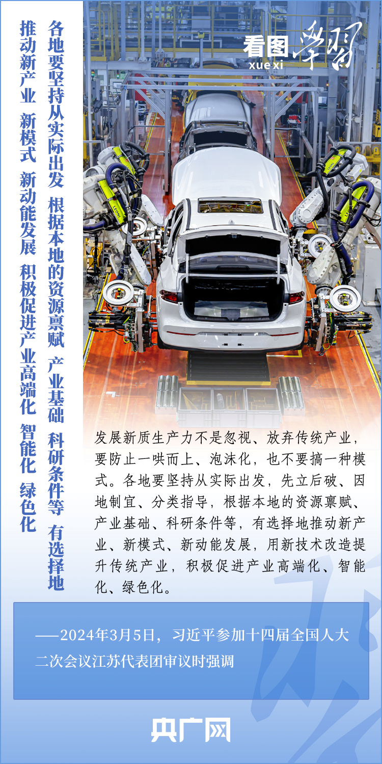 3月5日,十四屆全國人大二次會議正式開幕。5日下午,習(xí)近平總書記參加他所在的江蘇代表團審議時強調(diào),要牢牢把握高質(zhì)量發(fā)展這個首要任務(wù),因地制宜發(fā)展新質(zhì)生產(chǎn)力。發(fā)展新質(zhì)生產(chǎn)力不是忽視、放棄傳統(tǒng)產(chǎn)業(yè),要防止一哄而上、泡沫化,也不要搞一種模式。一起來學(xué)習(xí)!