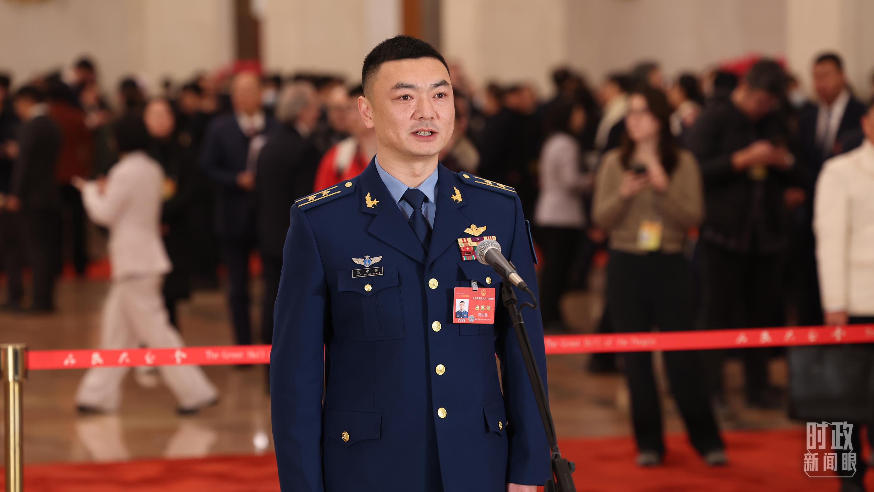 △2024年3月5日,十四屆全國人大二次會(huì)議首場“代表通道”集中采訪活動(dòng)中,全國人大代表、空軍航空兵某旅副參謀長高中強(qiáng)正在答記者問。(圖/視覺中國)