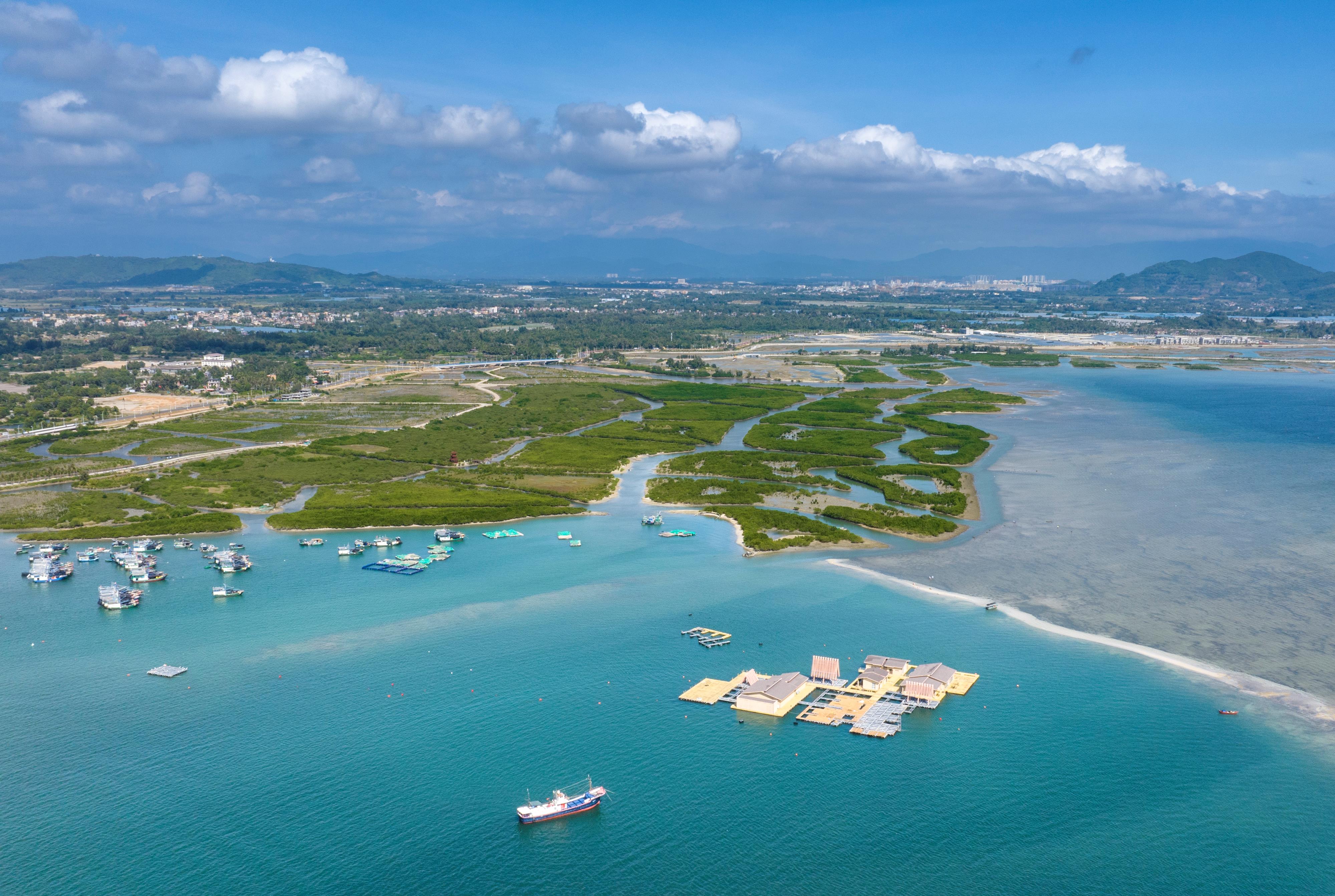 △海南陵水紅樹林國(guó)家濕地公園。紅樹林素有“海岸衛(wèi)士、鳥類天堂、魚蝦糧倉(cāng)”的美譽(yù),在凈化海水、防風(fēng)消浪、維持生物多樣性、固碳儲(chǔ)碳等方面發(fā)揮著極為重要的作用。