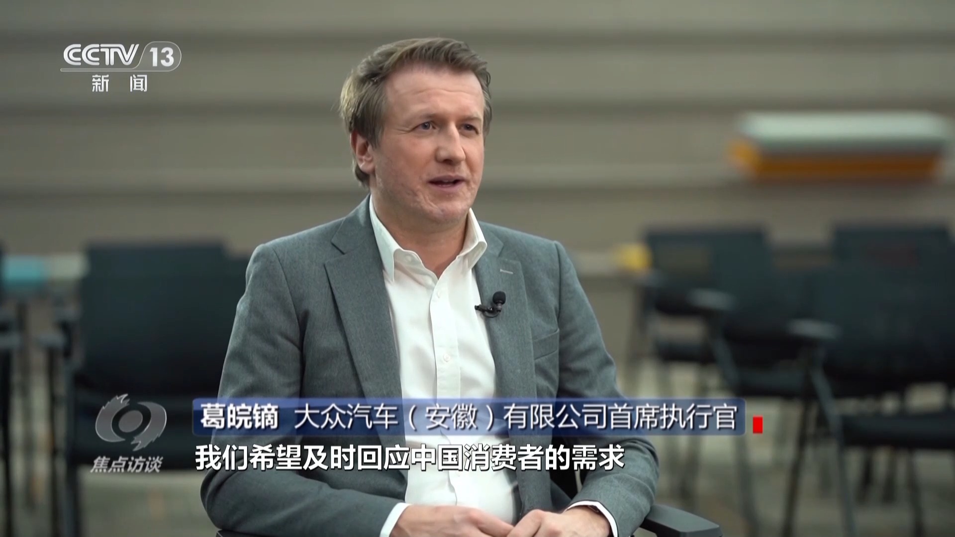 大眾汽車(安徽)有限公司首席執(zhí)行官 葛皖鏑:借助于這個研發(fā)中心,我們希望及時回應(yīng)中國消費(fèi)者的需求,這意味著一方面,我們要打造大眾汽車集團(tuán)首個專屬中國市場的電動汽車平臺;另外一方面,我們希望將其開發(fā)周期縮短約30%,這樣才能夠跟上中國市場的步伐。