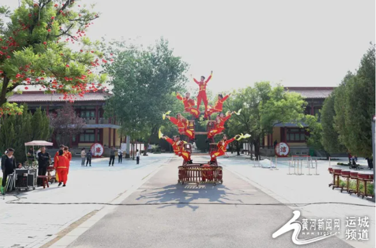圖為高臺花鼓表演現(xiàn)場。 “我覺得惠民演出的表演形式特別好,讓市民、游客近距離觀賞到高臺花鼓非遺表演?!毖輪T令狐亞妮在表演結(jié)束后感慨道。 5月5日,在山西運(yùn)城舜帝陵景區(qū)內(nèi),高臺花鼓表演隊(duì)伍一經(jīng)亮相,便吸引了游客的目光。演員身著傳統(tǒng)服飾,在層層疊起的木板凳上一次次完成驚險(xiǎn)的動作。最高潮時(shí)疊起9層板凳,演員攀援其上,既要分層表演,還要整體旋轉(zhuǎn),極具觀賞性,給游客留下深刻印象。 “花鼓表演太震撼了,當(dāng)演員轉(zhuǎn)起來的那一瞬間,感覺太神奇了,這個(gè)節(jié)目很精彩?!眮碜院幽系挠慰蛷堺愓f。
