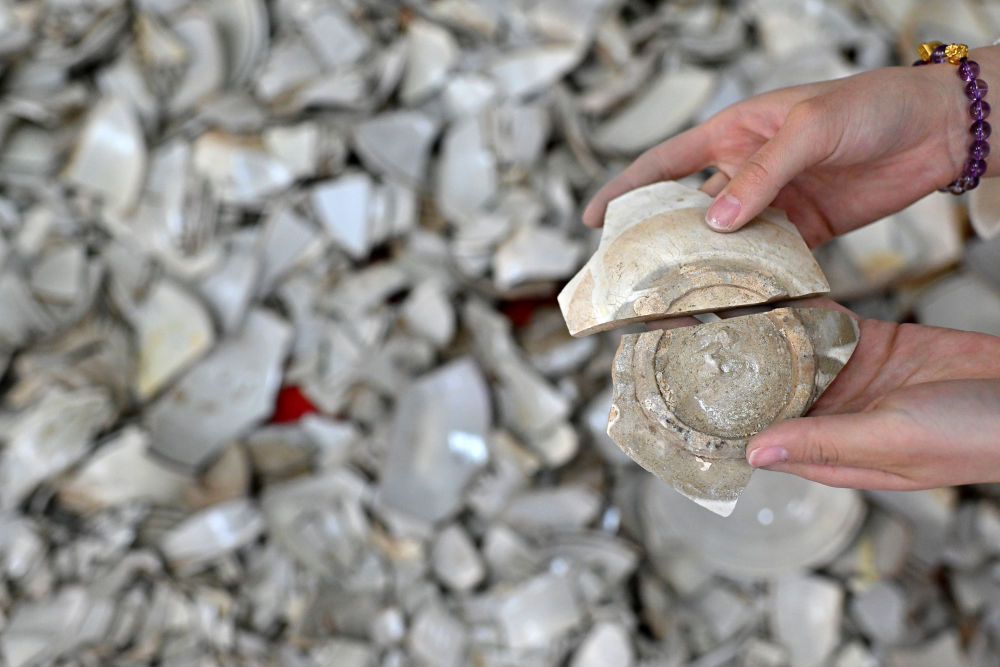 在云岡研究院可移動(dòng)文物修復(fù)室,工作人員高嘉珩在進(jìn)行瓷器修復(fù)(2024年2月26日攝)。