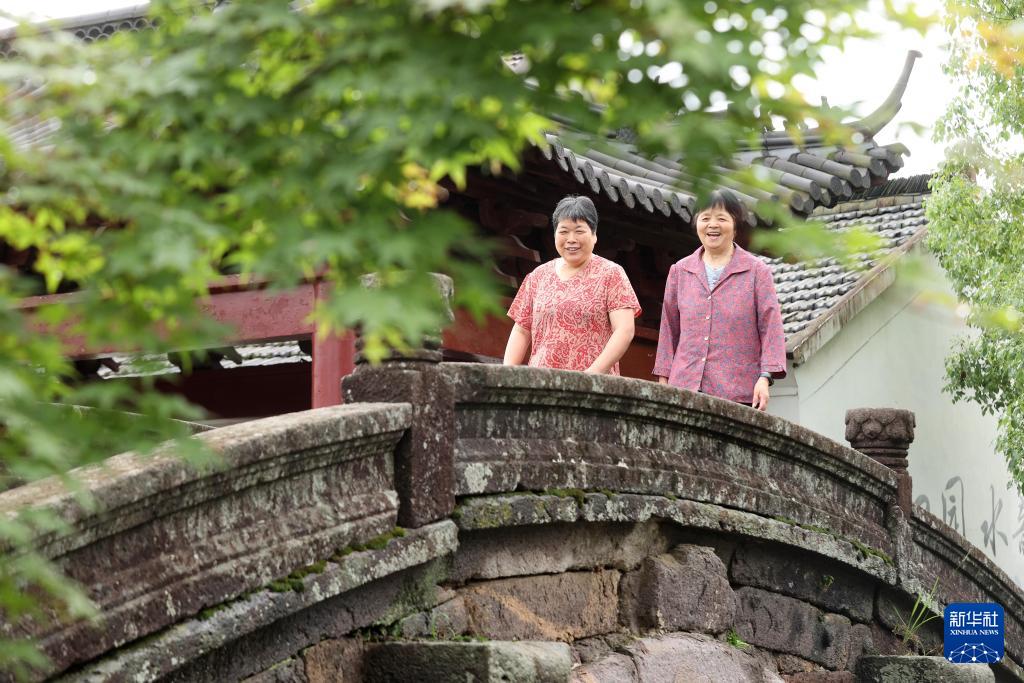 6月26日,村民在德清縣新安鎮(zhèn)舍北村萬(wàn)善橋上散步。(新華社發(fā) 謝尚國(guó) 攝)