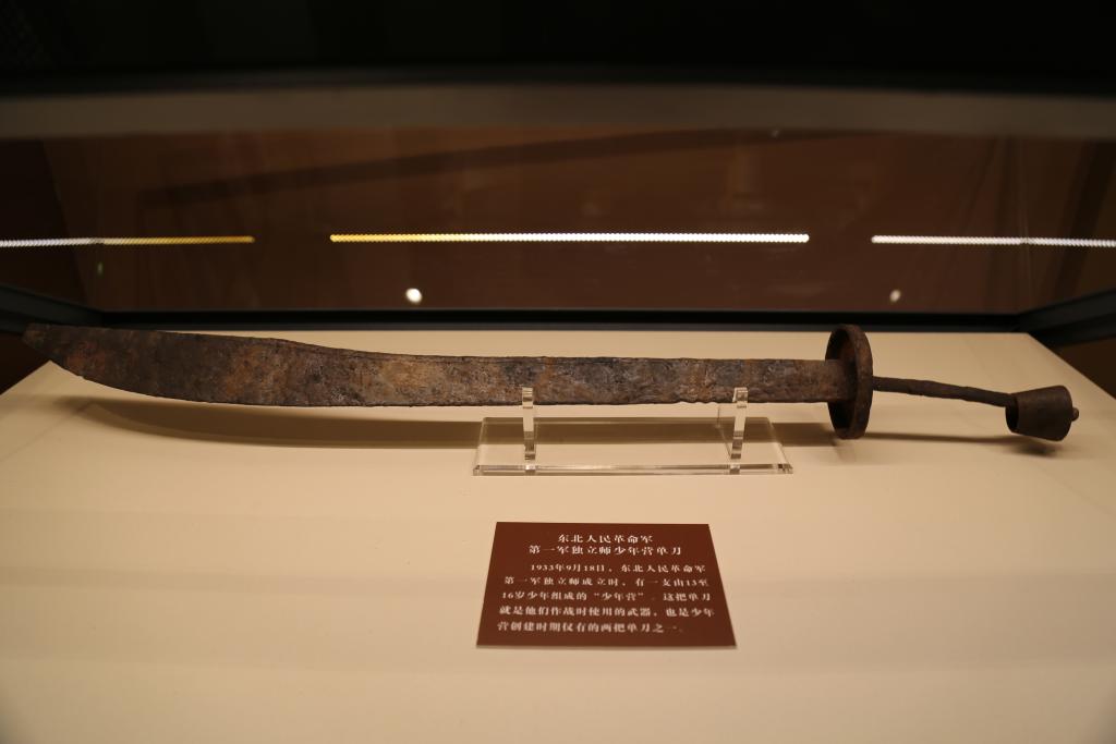 東北人民革命軍第一軍獨(dú)立師少年?duì)I單刀。新華社記者張博宇 攝 “九一八事變”后,中共滿洲省委派遣楊靖宇、趙尚志、周保中等共產(chǎn)黨員奔赴東北各地,開(kāi)始創(chuàng)建黨領(lǐng)導(dǎo)下的抗日武裝。1933年秋,東北人民革命軍第一軍獨(dú)立師“少年?duì)I”成立。70多個(gè)少年加入這支隊(duì)伍,他們中有隨父母參加抗日的孩子,有被解放的童工,還有孤兒…… “這把繳獲來(lái)的鐵制單刀,是黨創(chuàng)建少年?duì)I時(shí)為之配備的武器之一。少年?duì)I跟隨將士們主要在吉林磐石地區(qū)展開(kāi)抗日斗爭(zhēng)?!奔质〔┪镌簹v史部副主任王航說(shuō)。 1933年10月30日,少年?duì)I迎來(lái)首戰(zhàn)。那一役,他們?cè)跇宓榭h里面溝設(shè)伏,成功擊斃了日偽軍10人,俘虜10人,繳獲了大量物資,首戰(zhàn)告捷。1935年1月,中共磐石中心縣委機(jī)關(guān)遭到突襲。在突破敵人封鎖線途中,少年?duì)I沉著冷靜,隱藏在密林深處,打退了敵人一次次圍追堵截。 “少年?duì)I配合將士們英勇作戰(zhàn),破壞敵人交通運(yùn)輸線、攻占敵人縣城據(jù)點(diǎn),成就了敢打敢拼的‘鐵血少年?duì)I’威名?!蓖鹾秸f(shuō)。?湯彥宜說(shuō),在中華民族生死存亡的歷史關(guān)頭,中國(guó)共產(chǎn)黨帶領(lǐng)中華兒女浴血奮戰(zhàn),書(shū)寫(xiě)了百折不撓的抗戰(zhàn)史詩(shī),孕育出偉大抗戰(zhàn)精神,激勵(lì)著黨團(tuán)結(jié)帶領(lǐng)人民不斷從勝利走向勝利。 (責(zé)任編輯:梁艷) |