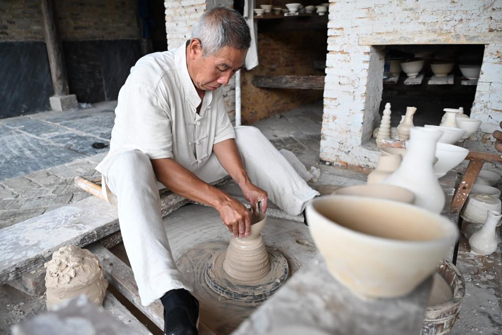 游客在陶陽里歷史文化街區(qū)游玩。新華社記者 隋尚君 攝 始建于明朝末年的徐家窯,是景德鎮(zhèn)保留最古老、最完整、最大的柴窯遺址,也成為許多游客打卡陶陽里的第一站。今年6月,徐家窯點火復燒,6000多件瓷器“浴火重生”。有的作品一經(jīng)面世,就被直播間的“粉絲”火速下單。 “徐家窯的復燒,旨在延續(xù)和弘揚傳統(tǒng)柴窯的陶瓷燒制技藝?!睆氖率止ぶ拼梢延?6年的景德鎮(zhèn)市非物質(zhì)文化遺產(chǎn)傳承人宗鴻新說,“現(xiàn)在愛好陶瓷的人越來越多,也逐漸年輕化,周末很多年輕人來這里體驗,只要大家想學,我們就用心教?!?/p>
