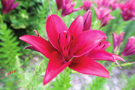百合花種類繁多,形態(tài)各異。純凈高雅的白色、熱情嫵媚的紅色、明麗澄澈的橙黃、浪漫俏皮的粉紅、雍容華貴的紫色,形似漏斗,又如喇叭,或向上開花,張揚(yáng)外翻、極端華麗,或含露低垂,矜持含蓄、超凡脫俗?;ㄩg蜂蝶飛舞,暗香浮動(dòng),游人三五成群,在花叢合影拍照,游玩嬉戲,好不愜意。市民王女士對(duì)這里贊賞有加:“看到這五顏六色的百合花,我的心情像盛開的花一樣,特別美!這里每季有每季的花開,每次來都有不一樣的驚喜和精彩?!?/p>